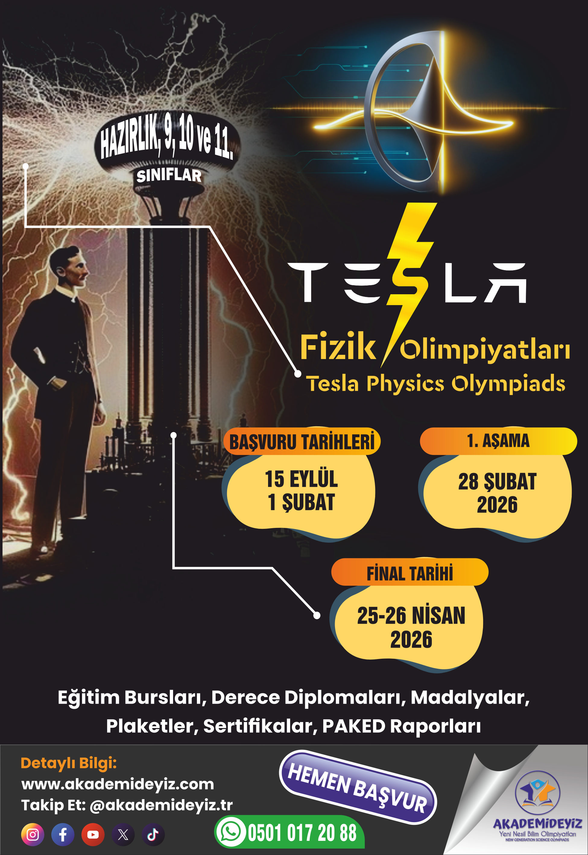 TESLA FİZİK OLİMPİYATLARI’NA 9,10 ve 11. SINIFLARDA OKUYAN ÖĞRENCİLERİMİZ KATILABİLİR.