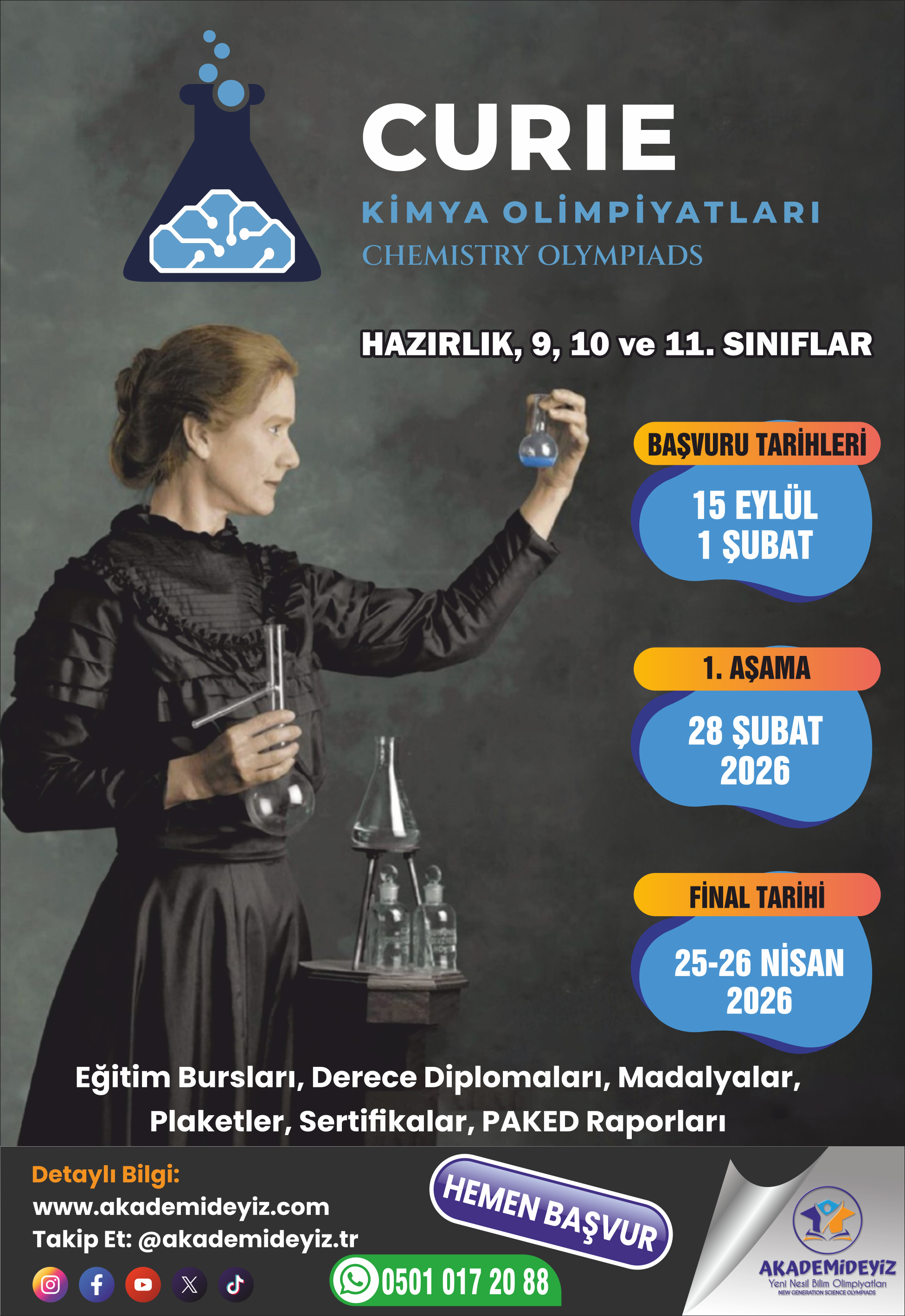 CURIE KİMYA OLİMPİYATLARI, kimya alanında öğrencilerin bilgi düzeylerini ölçmek, kimya becerilerini geliştirmek ve öğrencilere bilimsel düşünme ve problem çözme yetenekleri kazandırmak amacıyla düzenlenmektedir. Bu olimpiyatlar, katılımcıların kimya bilgisini derinleştirmelerine, laboratuvar becerilerini geliştirmelerine ve kimya alanında kendi kendilerine öğrenme yeteneklerini artırmalarına fırsat tanır. Aynı zamanda, gençleri kimyaya ilgi duymaya teşvik eder ve gelecekteki potansiyel kimya uzmanlarının kendilerini keşfetmelerine katkı sağlar. Bu yarışmalar, kimya bilimine olan ilgiyi artırırken aynı zamanda gençleri bilimsel araştırma yapmaya teşvik etmek için önemli bir platform sağlar.